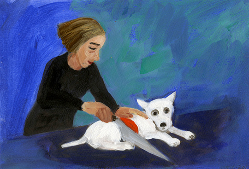 sawing dog